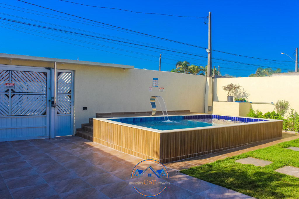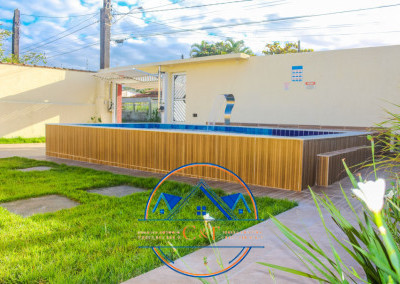 - Piscina de azulejo 6 x 3 com prainha infantil e com cascata, com 4 leds ,4 hidromassagens;