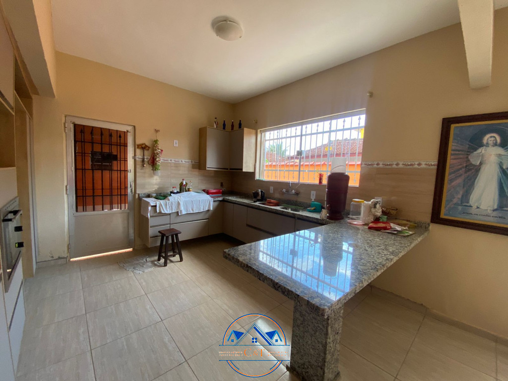 Composta por 03 dormitórios, sendo 01 suíte com closet, sala ampla, cozinha americana, banheiro social, lavabo e ducha externa, área de serviço, canil, área coberta com pia, churrasqueira, forno e fogão à lenha, depósito, jardim amplo, 04 vagas de garagem, espaço para piscina ou construção.