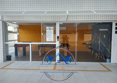 varanda gourmet com fechamento de vidro;